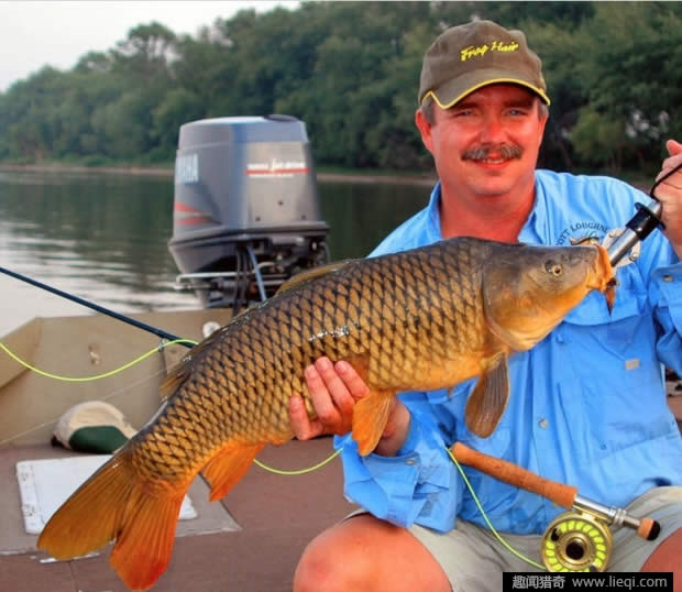 据每日电讯报5日报道,澳大利亚鲤鱼泛滥成灾,政府拟将一条植入芯片的鲤鱼在帕拉玛塔河中放生,并宣布能够钓上这条鲤鱼的垂钓者可以获得100万澳元(466万人民币)的奖励。这条政令吸引了不少垂钓者前来尝试。图为垂钓者钓上来的鲤鱼。
