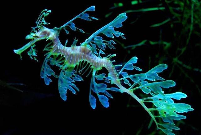 叶海龙的名字源于中国古代的神话故事,它的样子就像一片漂浮在水中的藻类,叶海龙可以呈现绿、橙、金等体色,它全身由叶子似的附肢覆盖,使其伪装性极强。只有在摆动它的小鳍或是转动两只能够独立运动的眼珠时才会暴露行踪。